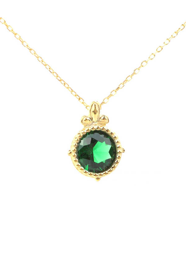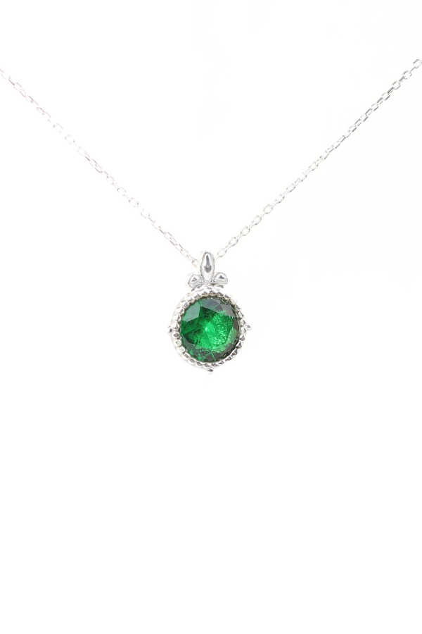 Gümüş kolye 925 ayar gümüşten yapılmıştır. Yuvarlak şeklindeki kolye 1,6 cm'ye 1,2 cm boyutlarındadır. Zinciri 45 cm uzunluğundadır ve taşları zümrüt rengi zirkondur. Ağırlığı 3,32 gramdır.