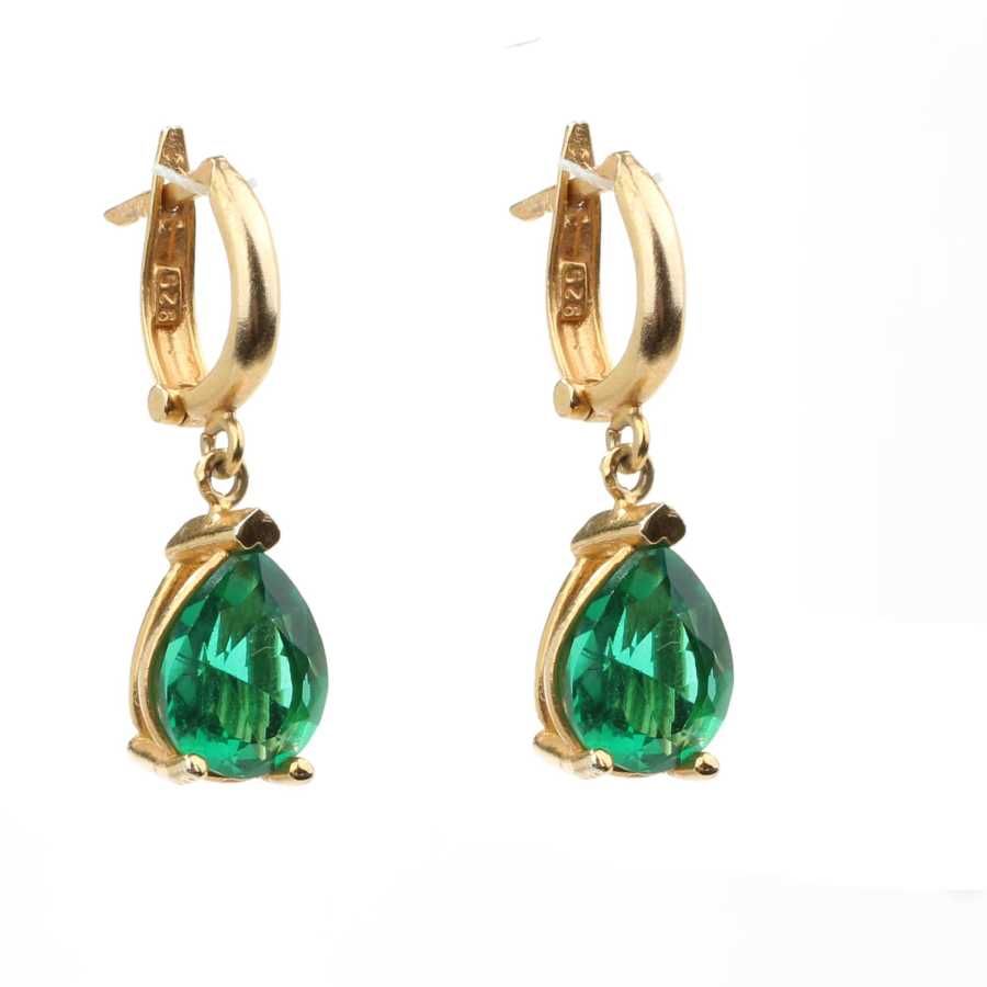 Gümüş küpe 925 ayar gümüşten yapılmıştır. Sallantılı üç tırnak model taşlı küpe tepeliği dahil 2,5 cm'ye 0,8 cm boyutlarındadır. Küpe sentetik zümrüt taşlıdır. Ağırlığı 4,02 gramdır.