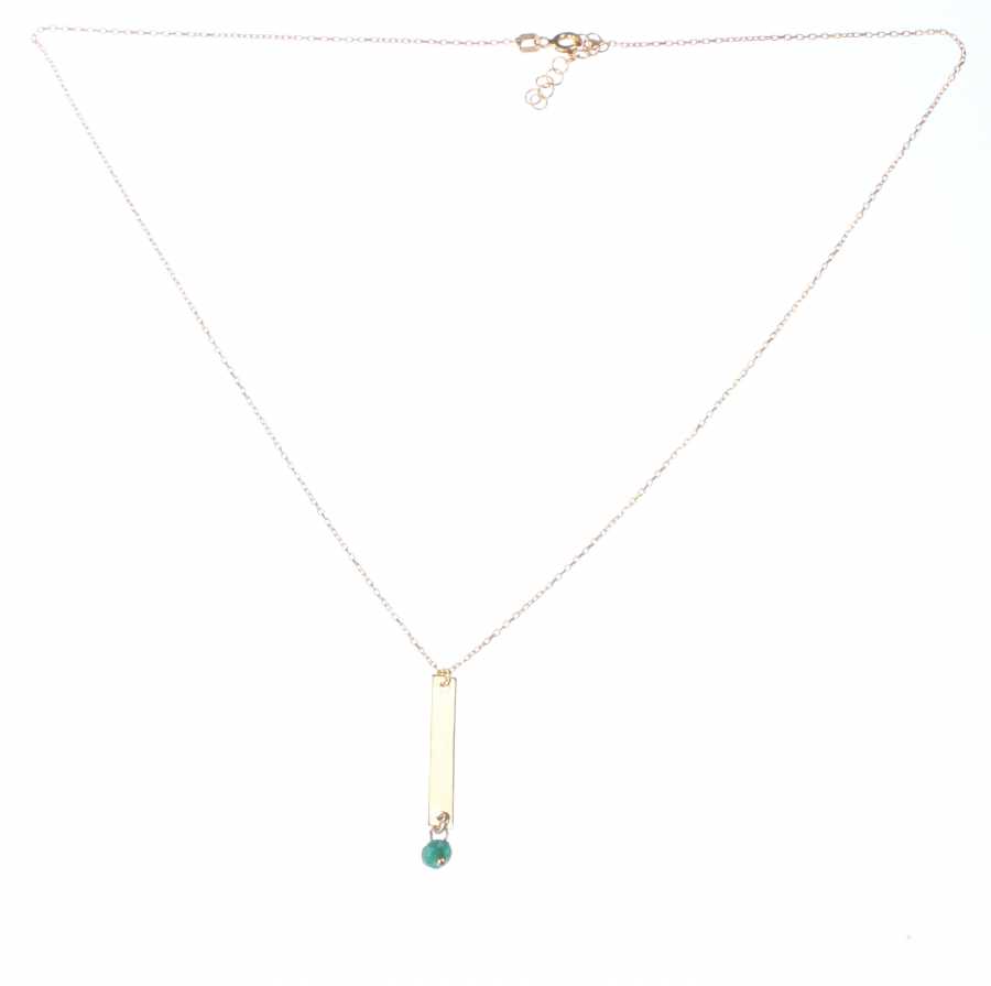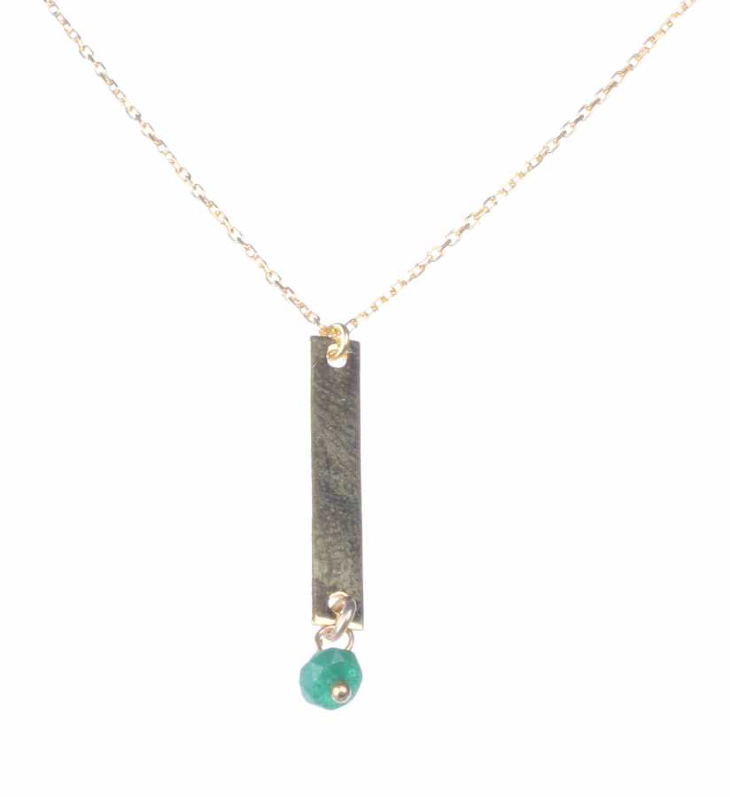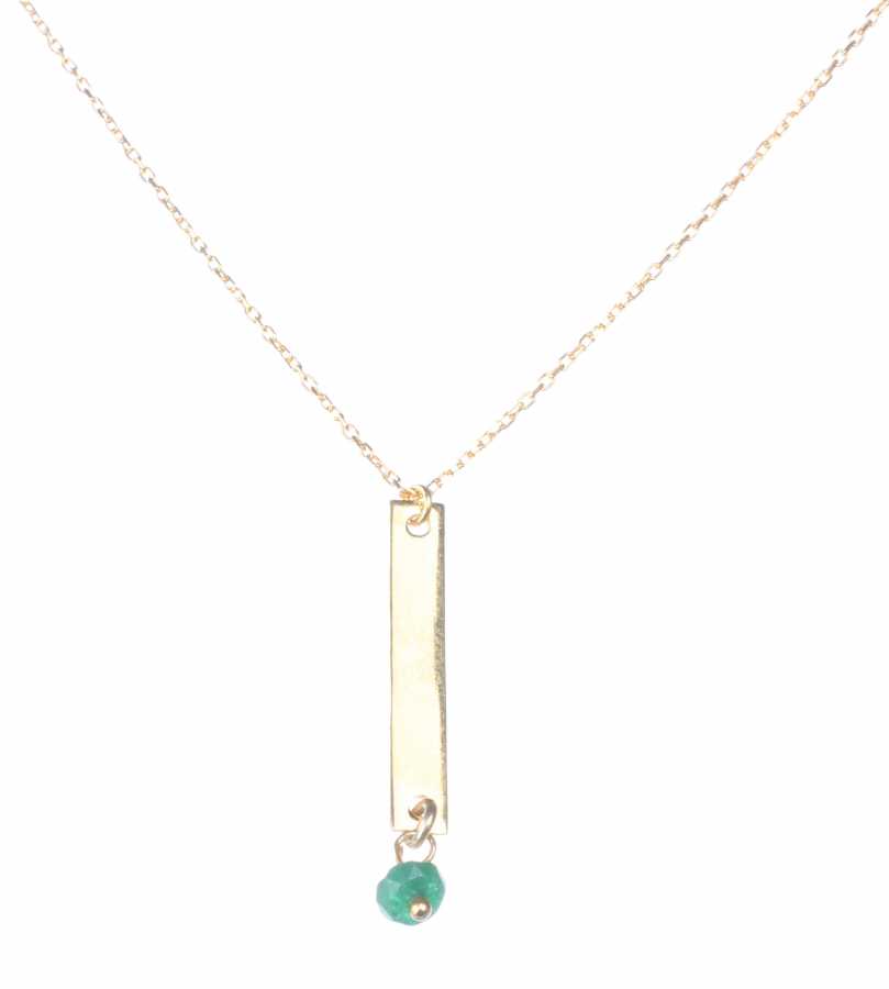 925 Ayar Gümüş Zümrüt Taşlı Plaka Kolye, Sarı