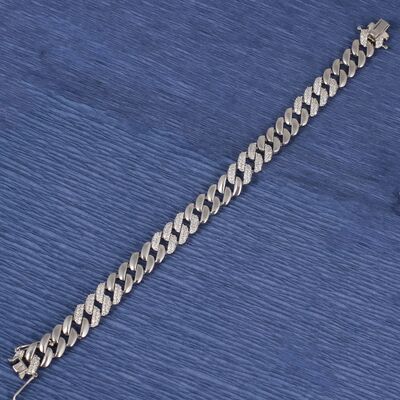Bileklik 925 ayar gümüşten imal edilmiştir. Gurmet zincir bileklik 18,5 cm uzunluğundadır. Bileklik zirkon taşlıdır. Gümüş bileklik 15,93 gram ağırlığındadır.