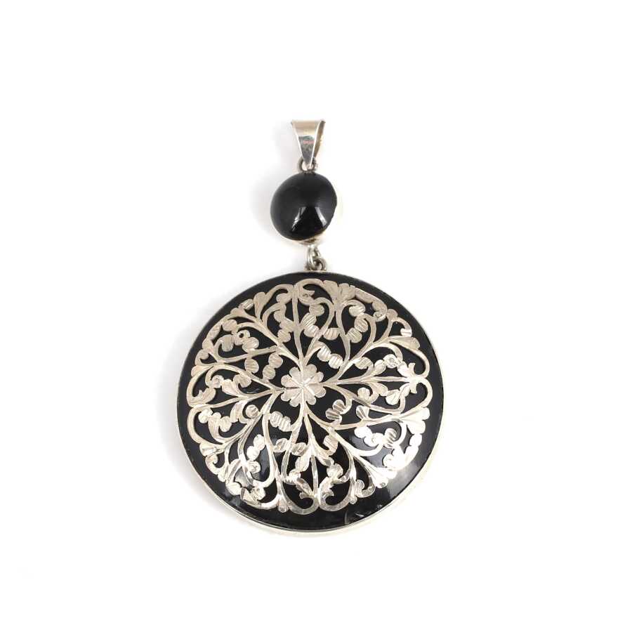Kolye ucu 925 ayar gümüşten imal edilmiştir. Zincir dahil değildir. Kolye ucu 6,5 cm 'ye 4,5 cm boyutlarındadır. El işi kalem işlemeli kolye ucu oltu taşlıdır. Kolye ucu 24,54 gram ağırlığındadır.