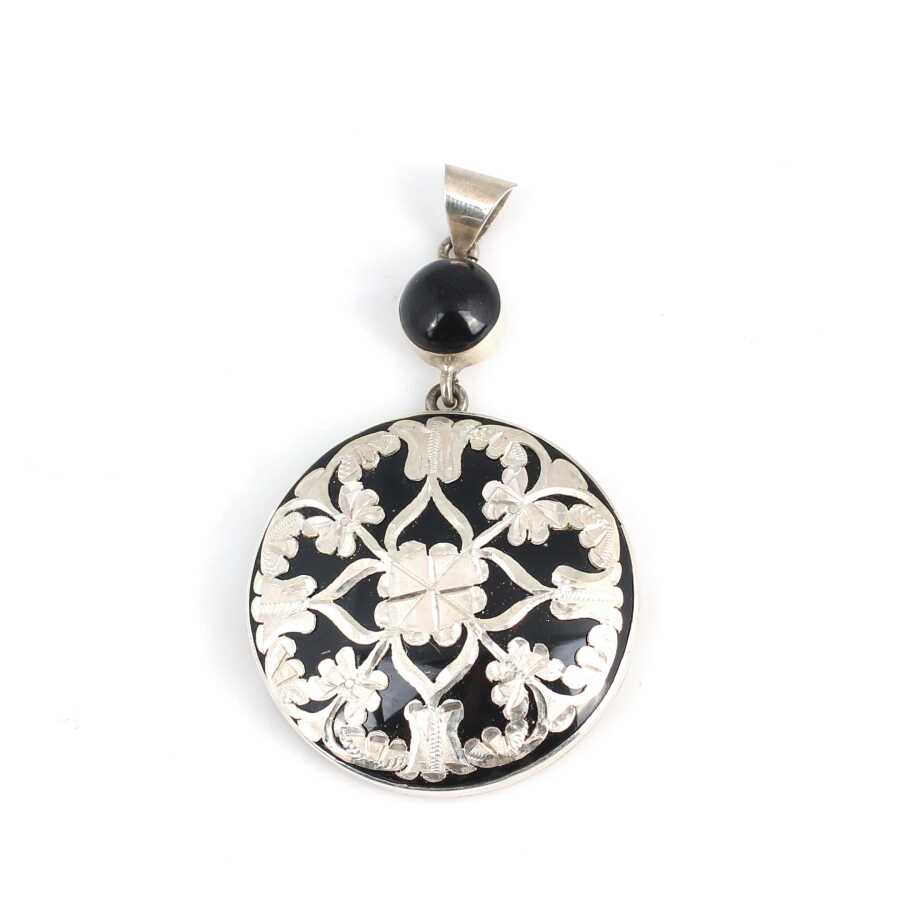 Kolye ucu 925 ayar gümüşten imal edilmiştir. Zincir dahil değildir. Kolye ucu 5,5 cm 'ye 3,8 cm boyutlarındadır. El işi kalem işlemeli kolye ucu oltu taşlıdır. Kolye ucu 16 gram ağırlığındadır.