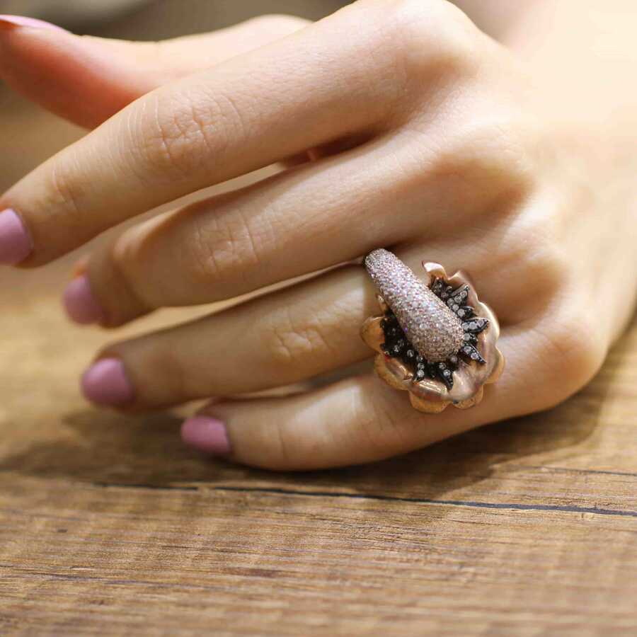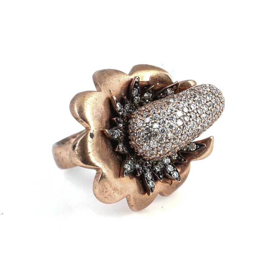 925 Ayar Pembe Gümüş Taşlı Yüzük