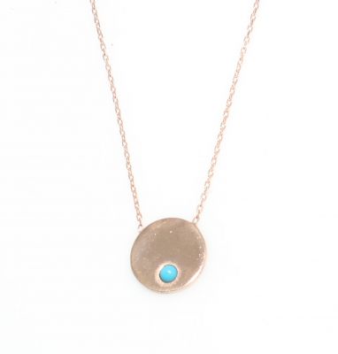 925 Ayar Rose Gümüş Mavi Taşlı Yuvarlak Kolye