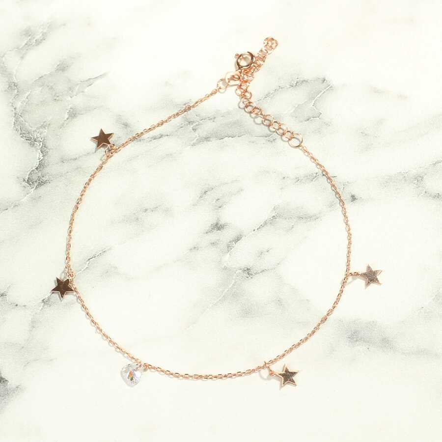 925 ayar gümüştür. Minik üçgen zirkon taşlı 4 adet yıldız modelden oluşan halhalın uzunluğu: 20,5 cm + 4 cm uzatma zinciri vardır. Ürün pembe renktedir. Gramı: 1,77 gr925 Ayar Rose Gümüş Minik Üçgen Zirkon Taşlı Yıldızlı Halhal