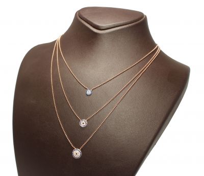 925 Ayar Rose Gümüş Nazar Boncuklu 3 Zincir Kolye