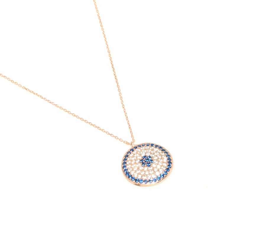 925 Ayar Rose Gümüş Nazar Boncuğu Kolye