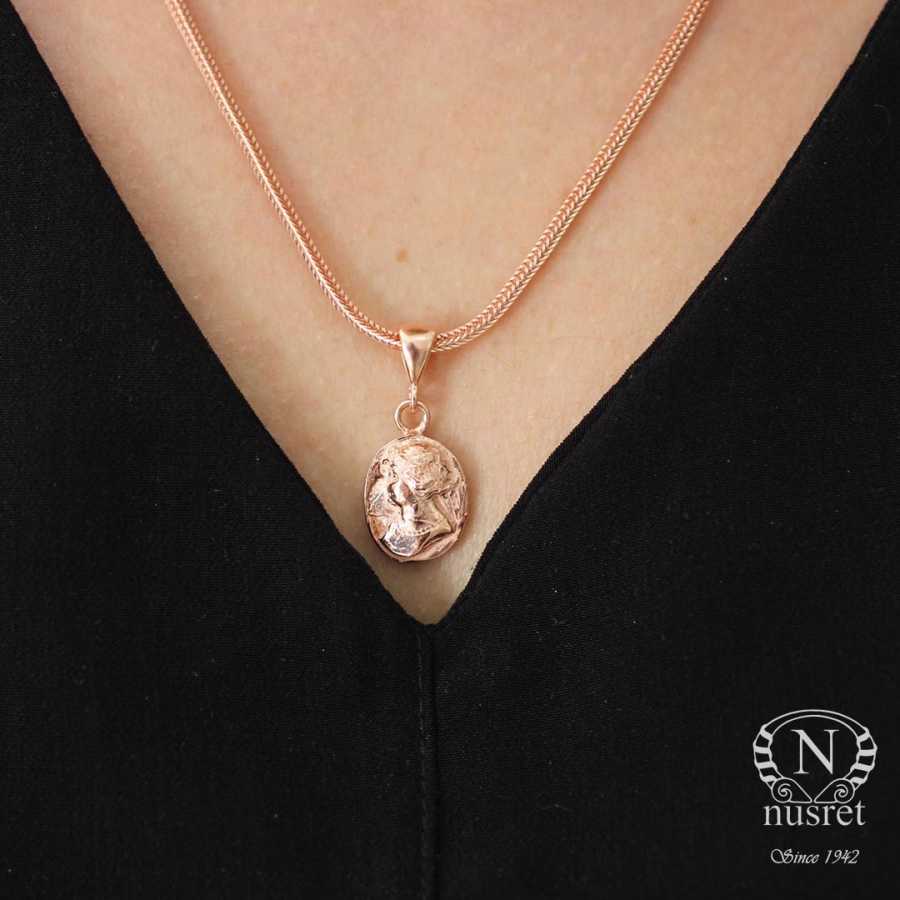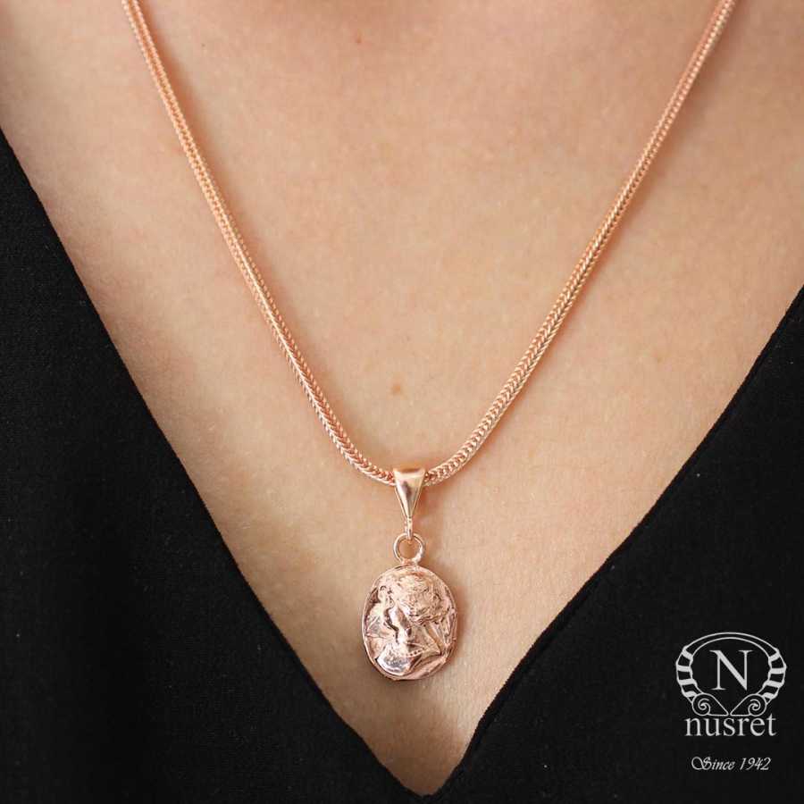925 Ayar Rose Gümüş Queen Elizabeth Madalyon Kolye