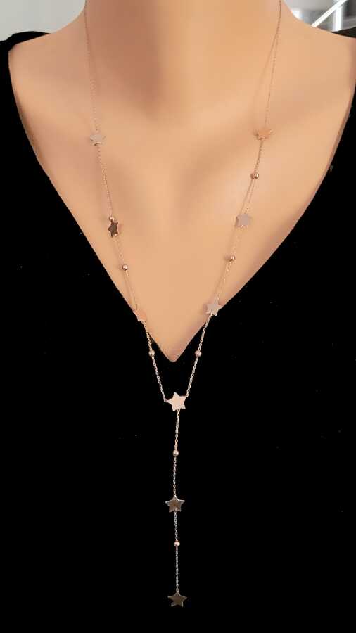 Gelince Haber Ver Gümüş kolye 925 ayar gümüşten yapılmıştır. Kolye 57 cm uzunluğundadır. Kolyenin Y kısmı 9 cm uzunluğundadır. Kolye 9 adet yıldızdan ve 9 adet minik toplardan oluşmaktadır. Yıldız 8 mm ve toplar 3 mm boyutlarındadır. Kolye taşsızdır Gramı: 3,48