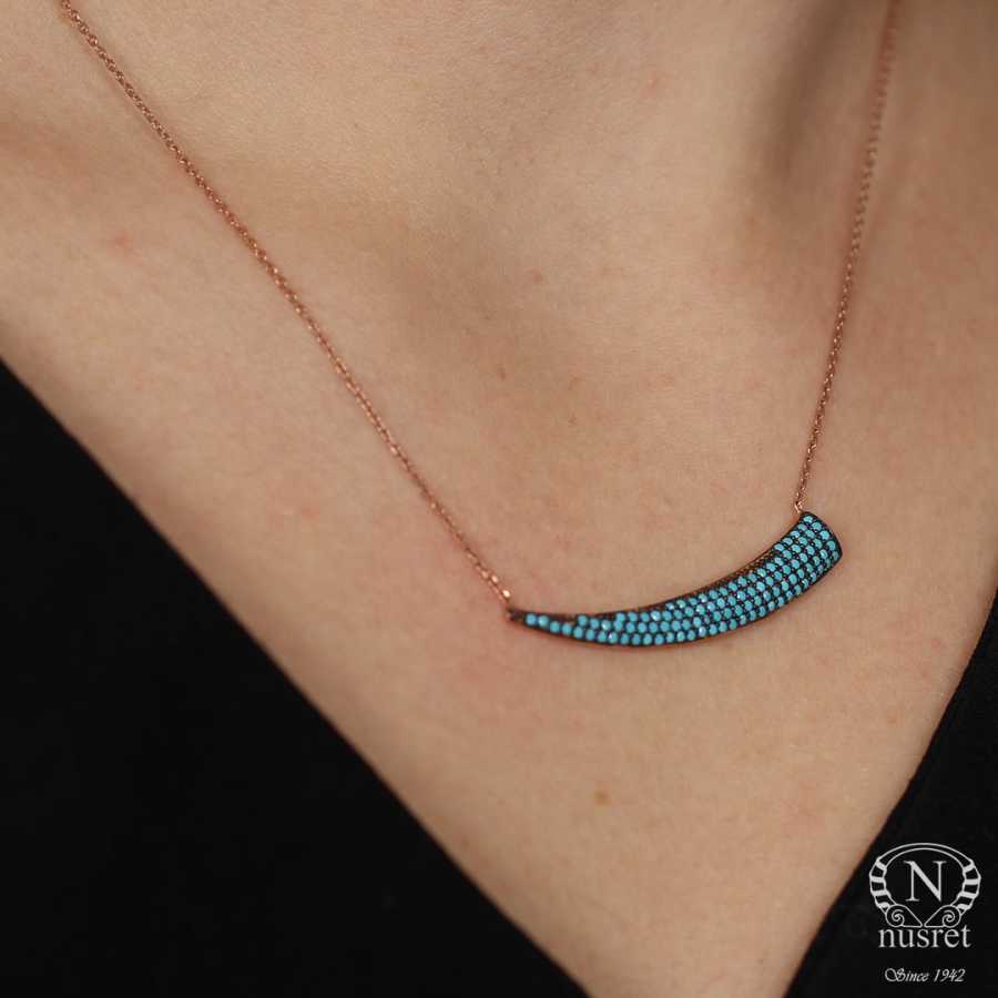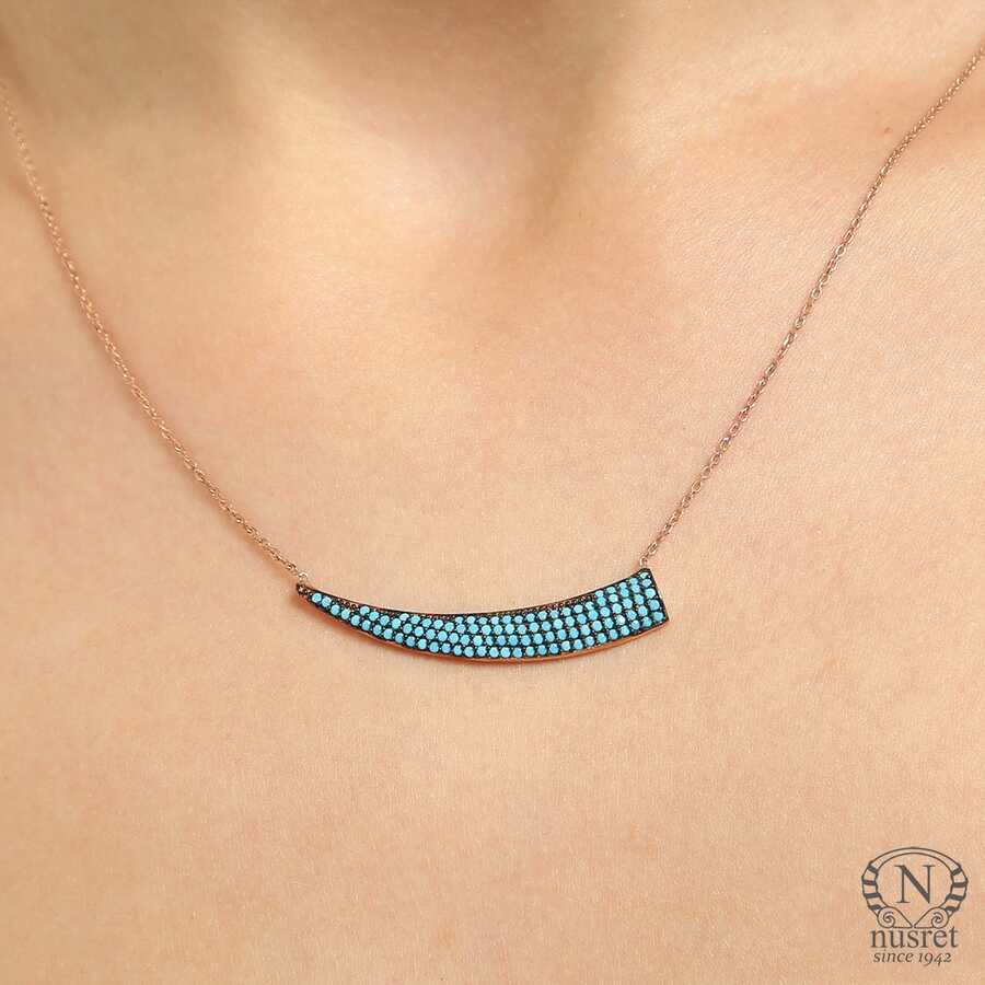 Gümüş kolye 925 ayar gümüşten yapılmıştır. Kılıç kılıfı kolye 3,9 cm'ye 0,7 cm boyutlarında ve 42 cm uzunluğundadır. Kolye turkuaz taşlıdır. Ağırlığı 2,89 gramdır.