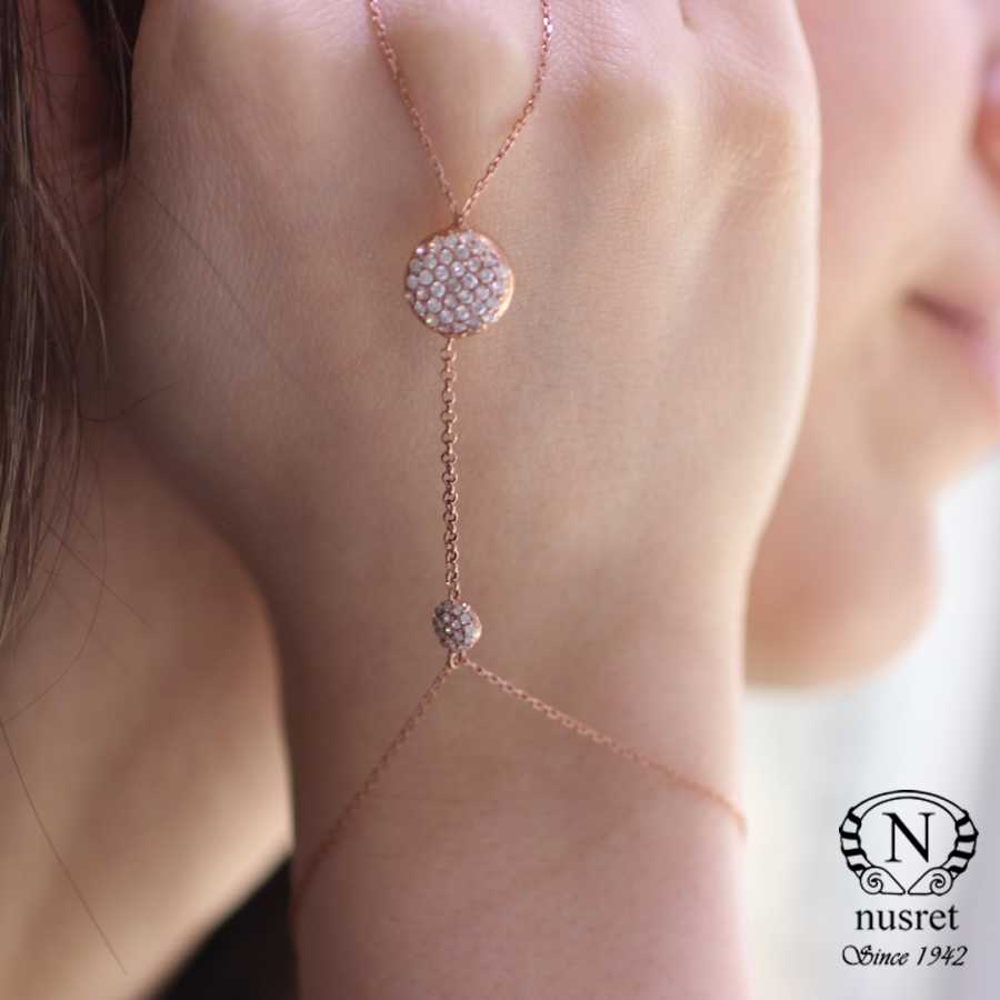 925 Ayar Rose Gümüş Yarım Yuvarlak Taşlı Şahmeran