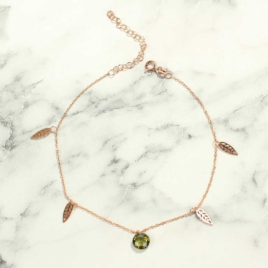 925 ayar gümüştür. Yuvarlak peridot taşlı 4 adet defne yaprağı modelden oluşan halhalın uzunluğu: 20,5 cm + 4 cm uzatma zinciri vardır. Ürün Pembe renktedir. Gramı: 1,77 gr925 Ayar Rose Gümüş Yuvarlak Peridot Taşlı Defne Yaprağı Halhal