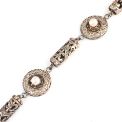 925 Sterling Silver Antique Bracelet with Pink Pearl