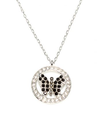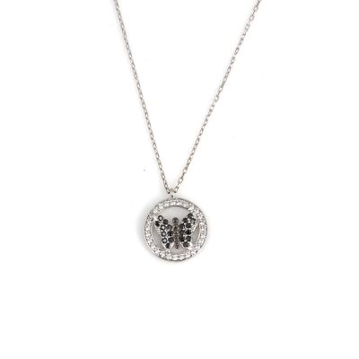 925 Ayar Gümüş Kelebek Kolye, Beyaz - Siyah Taş