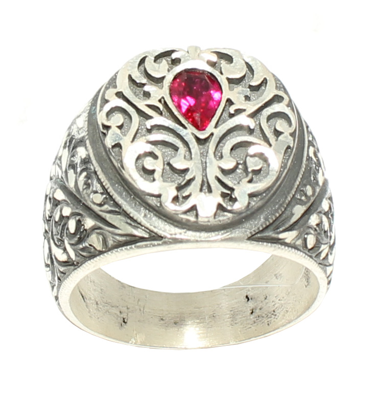925 Sterling Silver Drop Shape Zircon Ruby Stone Man Ring