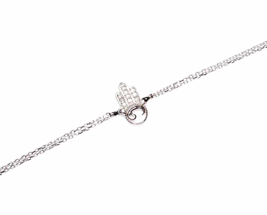 The bracelet is made of 925 sterling silver. The gemstone bracelet is 20 cm long. The Elif vav letter and Fatma Eli figure are 1.4 cm in size. The bracelet has a double chain and is set with zircon stones. The silver bracelet weighs 1.65 grams.