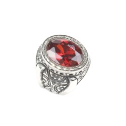 925 Sterling Silver Handcarved Rose Carved Ruby Stone Man Ring