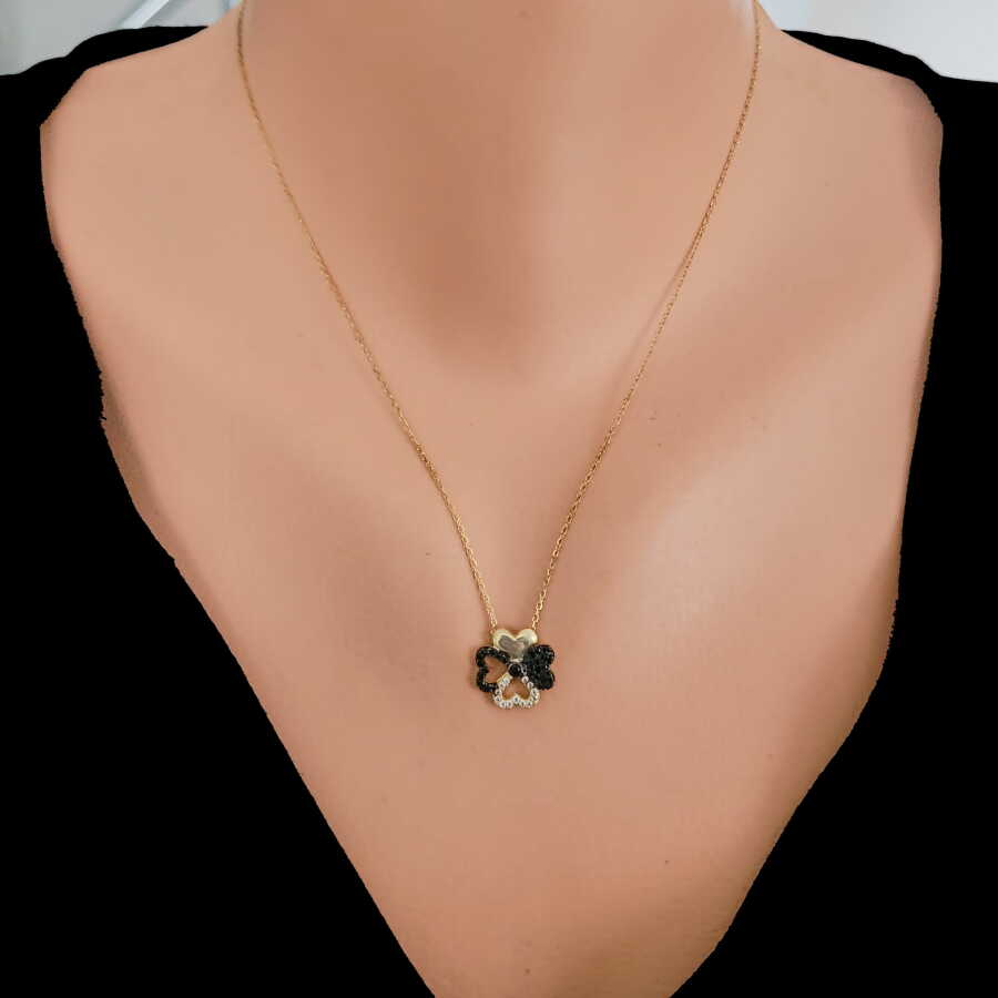 Notify me when its in stock925 Sterling Silver, Hearts Clover Dainty Necklace with white & black Cz - Pendant Size: 2,3 x 0,7 cm, Chain Size: 42 cm - Weight: 1,75 g