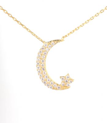 925 Ayar Gümüş Ay ve Yıldız Modeli Kolye