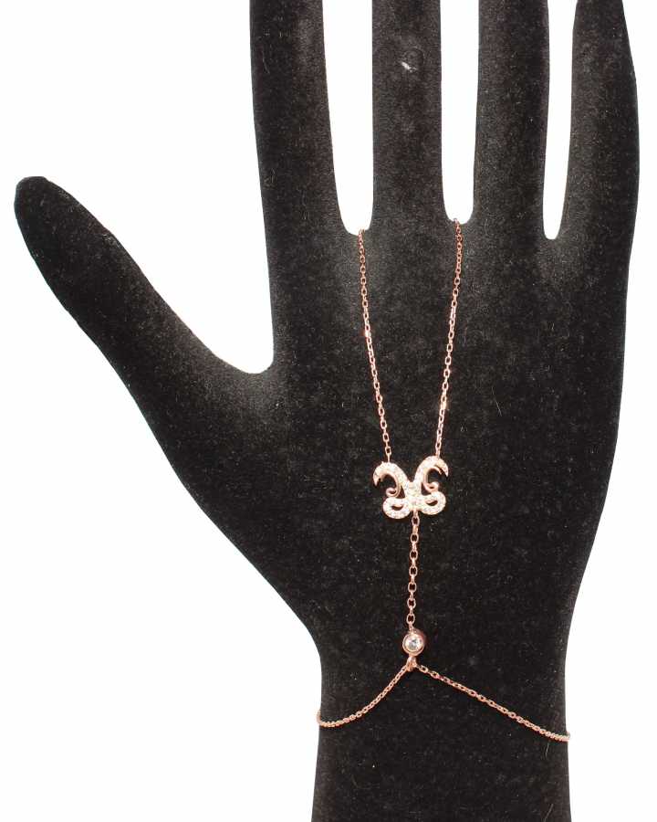 Finished in warm rose gold plating, the fine chain structure beautifully connects bracelet and ring, creating a sophisticated silhouette on the hand. Its lightweight and delicate design makes it perfect for daily wear, Ramadan gatherings, Eid celebrations, or as a thoughtful gift for someone special. Whether styled alone or layered with other bracelets, this Vav hand chain adds a soft yet powerful statement to your jewelry collection.