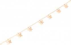925 Sterling Silver 25 cm chain size extra extension chain:27 cm, white stone, roze color butterfly anklet, Gram:4,50 gr