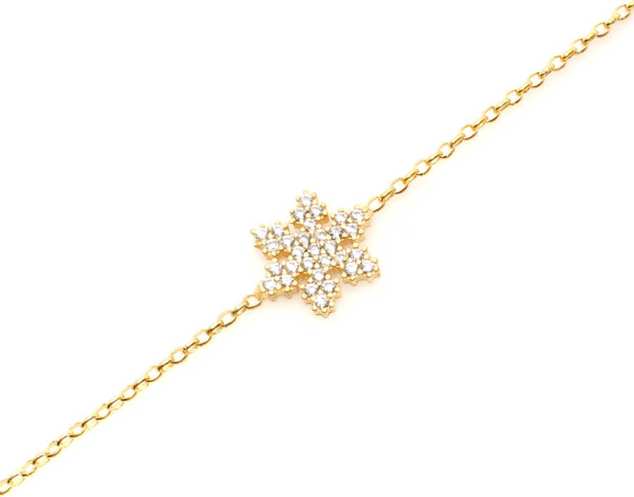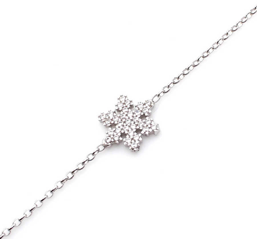 Bileklik 925 ayar gümüşten imal edilmiştir. Taşlı bileklik 18 cm uzunluğundadır. Kar tanesi figürü 1,1 cm boyutlarındadır. Bileklik zirkon taşlıdır. Gümüş bileklik 1,72 gram ağırlığındadır.