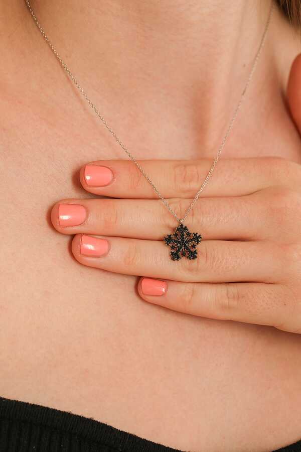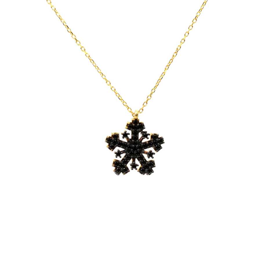925 sterling silver necklace featuring a 1.8 × 1.6 cm snowflake pendant. Comes with a 45 cm chain, is adorned with zircon stones, and weighs approximately 2.23 grams.