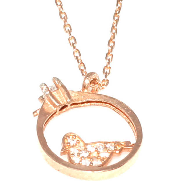 Bu kolye 925 ayar gümüşten yapılmıştır. Tektaş şeklindeki kolye içinde minik bir güvercin vardır. Bu kolye 1,5 cm'ye 1,2 cm boyutlarındadır. Zinciri 41 cm uzunluğundadır ve taşları beyaz zirkondur. Ağırlığı 1,9 gramdır.