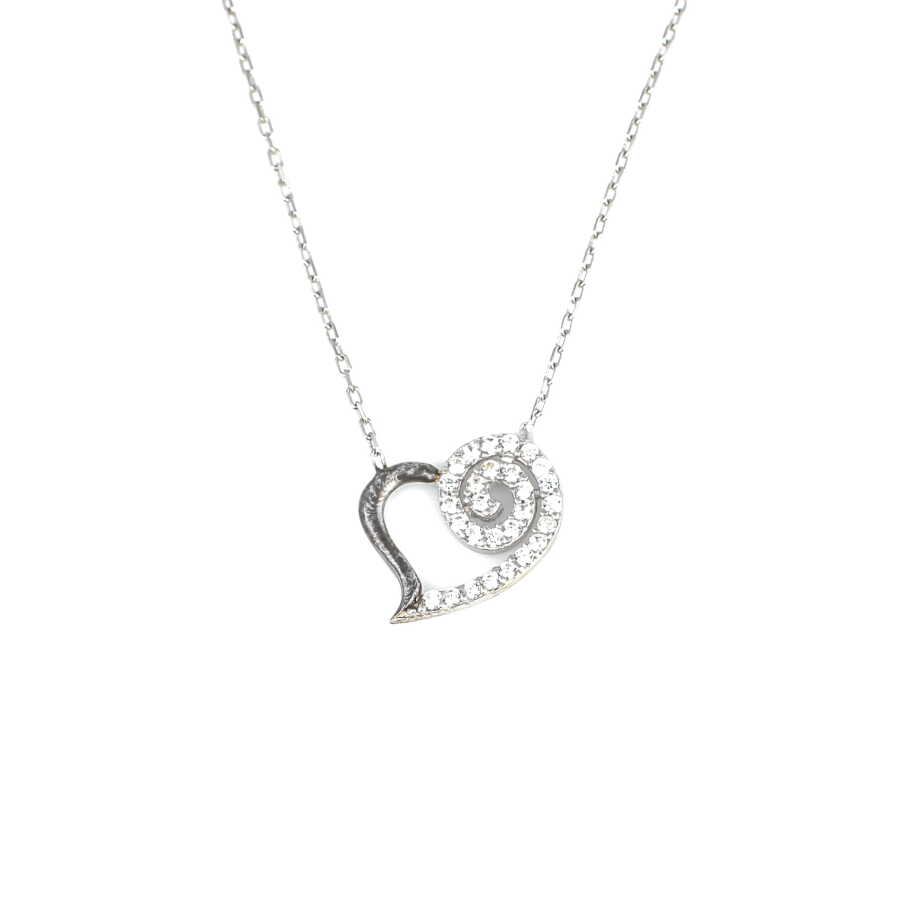 Notify me when its in stock925 Sterling Silver, Spiral Heart Dainty Necklace with white Cz - Pendant Size: 1,5 x 1,3 cm, Chain Size: 42 cm - Weight: 1,95 g