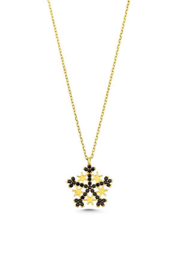 WHYL092 - 925 Ayar Gümüş Yıldızlı Kar Tanesi Kolye, Beyaz - Siyah Taş