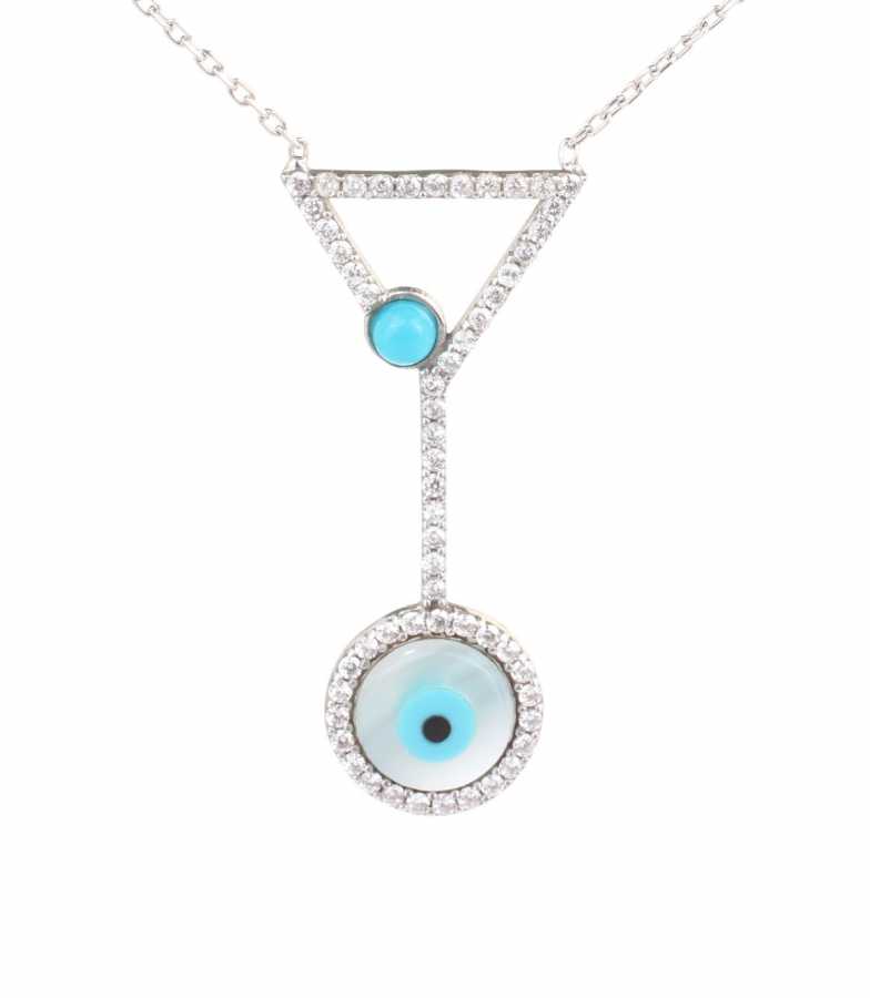 925 Ayar gümüştür. Zincir uzunluğu: 43 uzatma zinciri ile max 45,5 cm beyaz renkli 3,5 x 1,5 cm çapında taşları beyaz zirkon ve sedef . Gramı: 3,5 gr