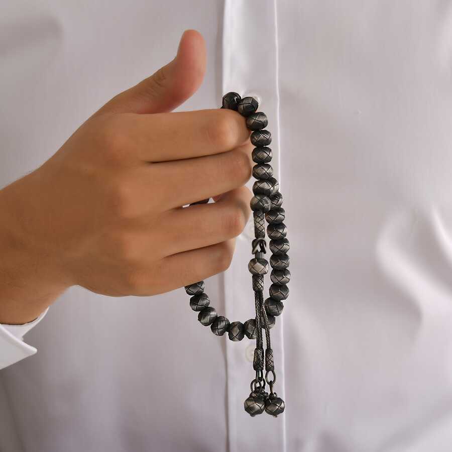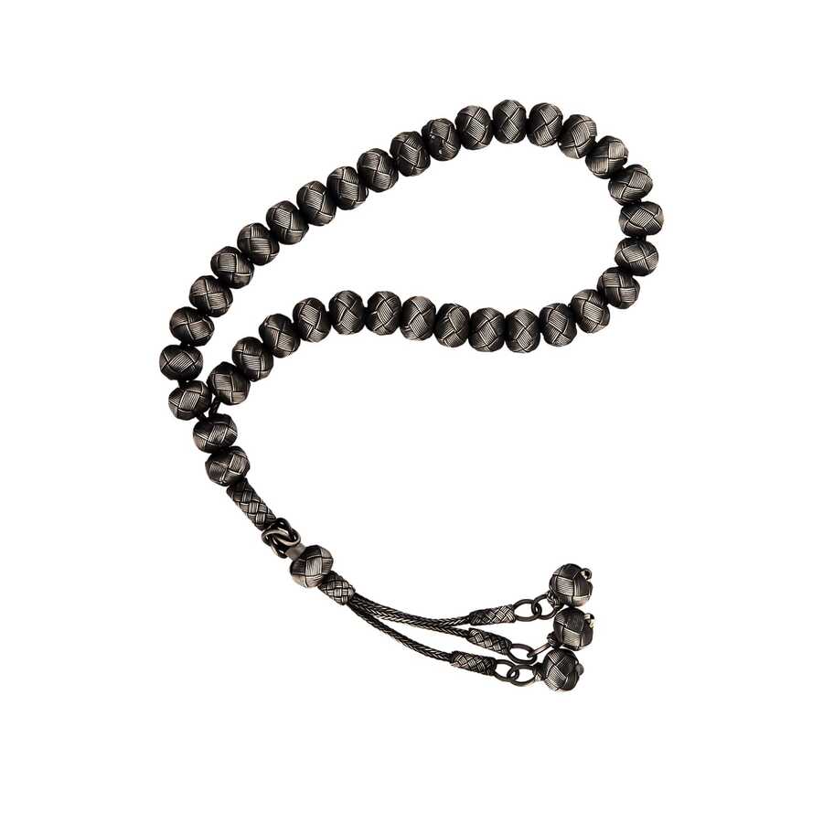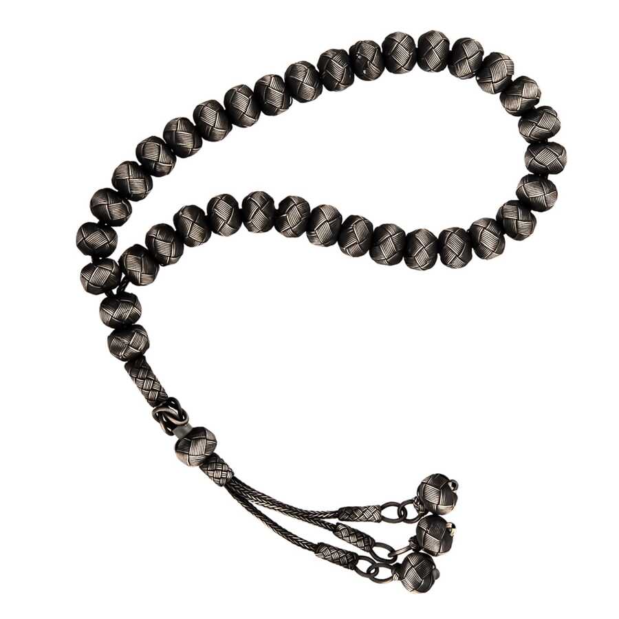 999 Ayar Gümüş Kazaz Tesbih, Siyah
