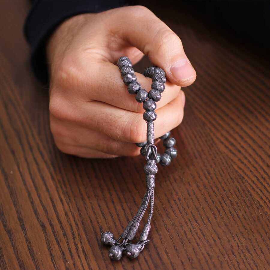 999 Ayar Gümüş Siyah Renk Kazaz Tesbih