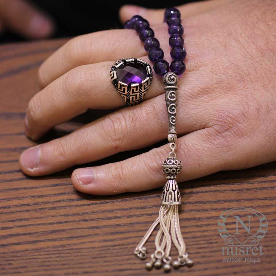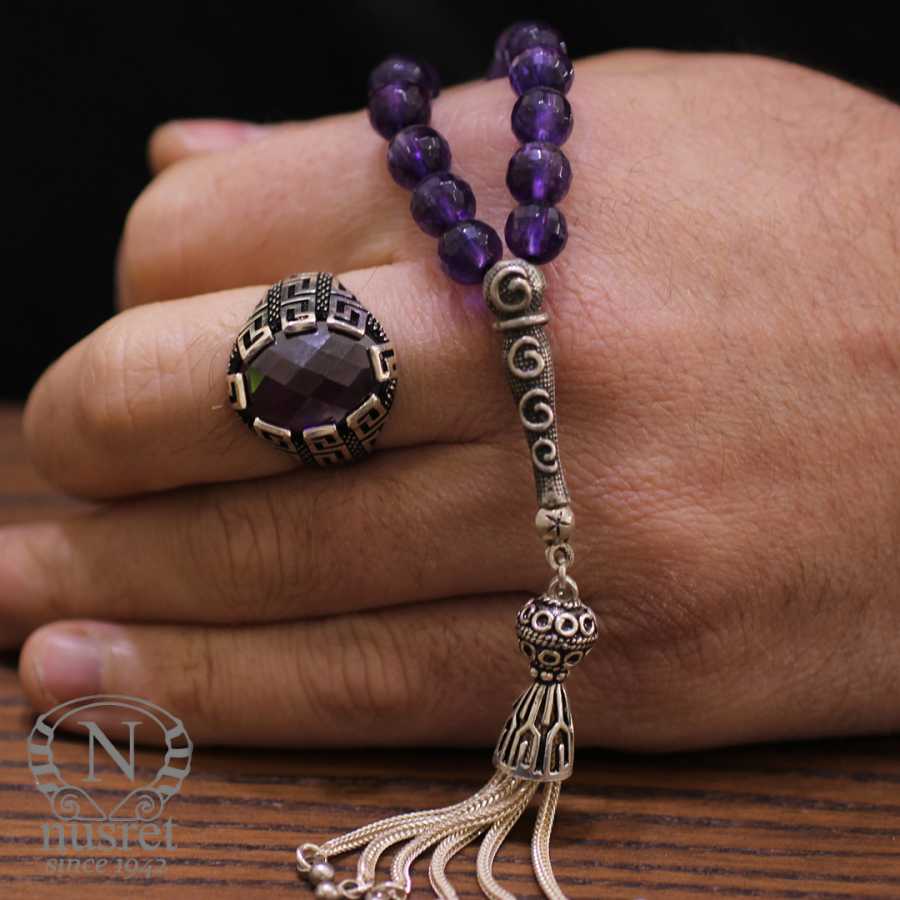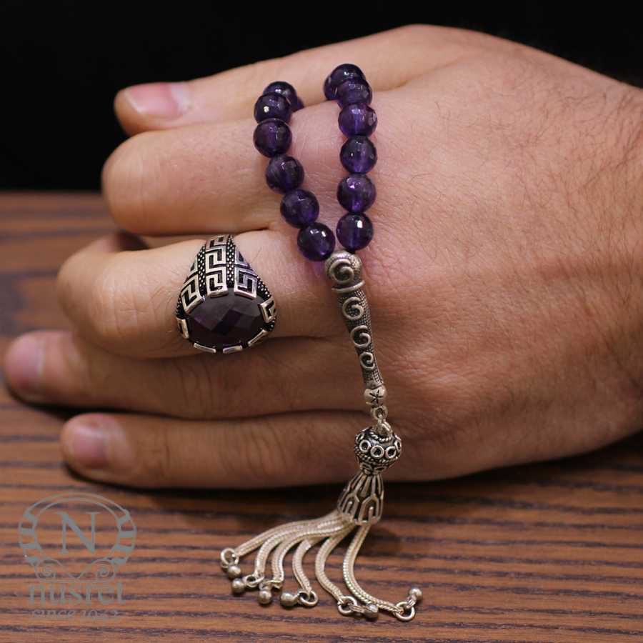 Küre Ametist Doğaltaş Gümüş Tesbih