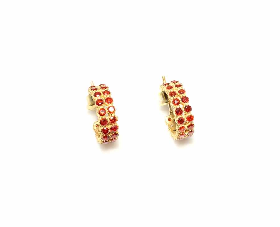 Gümüş küpe 925 ayar gümüşten yapılmıştır. C şeklindeki taşlı küpe 1,6 cm'ye 0,50 cm boyutlarındadır. Küpe kırmızı zirkon taşlıdır. Ağırlığı 4,3 gramdır.