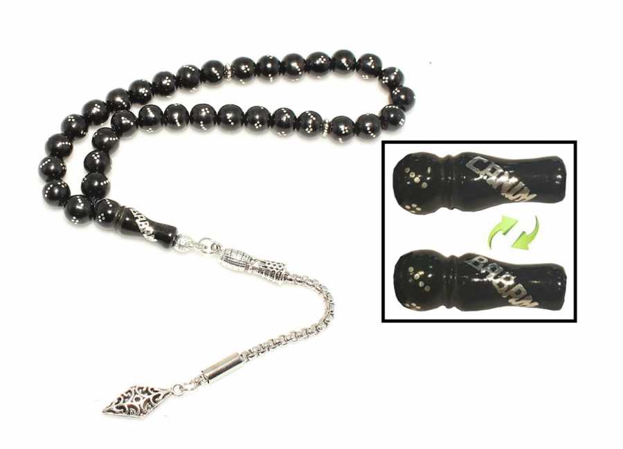 WTASTSBH091 - Canım Babam Yazılı Oltu Taşı Tesbih, Kamçı Püskül