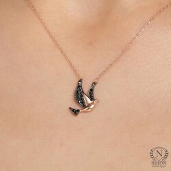 Kelebek Modeli 925 Ayar Gümüş Kolye, Beyaz Siyah - Beyaz Taş