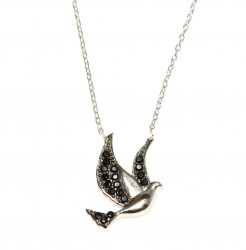 Butterfly Design 925 Sterling Silver Necklace with Black Zircon
