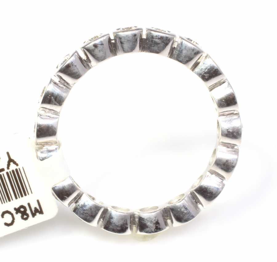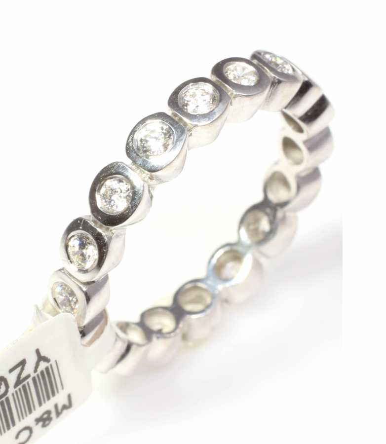 Tamtur yüzük 18 ayar altın madeninden üretilmiştir. Yüzük üzerinde 18 adet 0,23 karat ağırlığında F renk VS berraklığında beyaz pırlanta taş mevcuttur. Tam tur yüzük 2,94 gram ağırlığındadır. Sertifika için bizimle iletişime geçebilirsiniz.