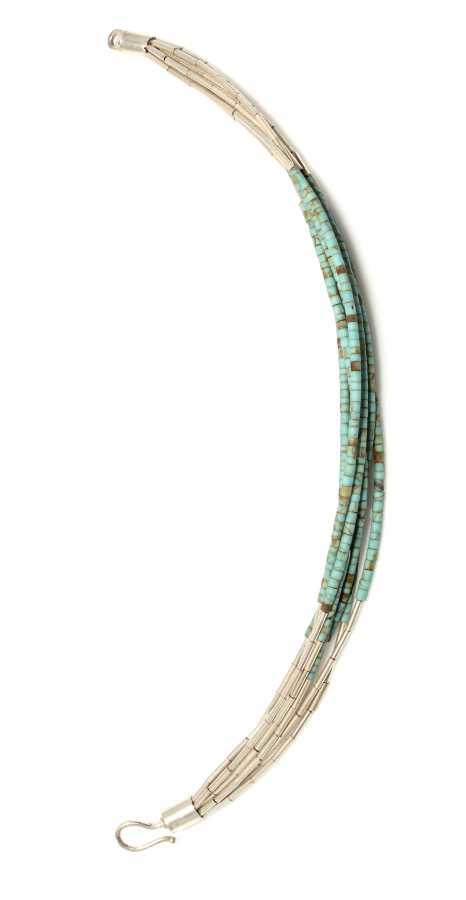 Bileklik 925 ayar gümüşten imal edilmiştir. Taşlı bileklik 19 cm uzunluğundadır. Bileklik turkuaz taşlar ve şarnel borular eklenerek 6 sıra olarak tasarlanmıştır. Gümüş bileklik 11,54 gram ağırlığındadır.