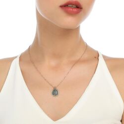 14 Ayar Altın & Gümüş Grek Desenli Kolye Ucu
