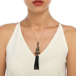 24 Ayar Altın ve Gümüş Safir Taşlı Püskül Kolye Ucu