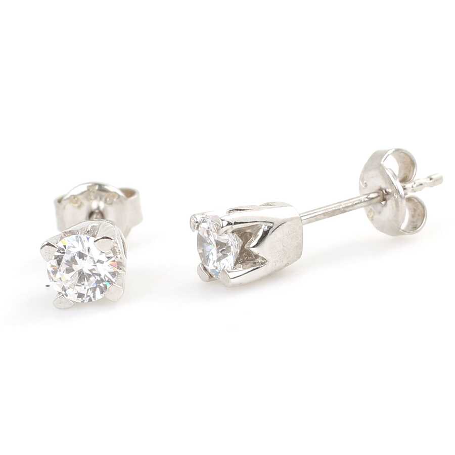 Gümüş küpe 925 ayar gümüşten yapılmıştır. Tektaş şeklinde çivi küpe 0,45 carat görünümünde 0,5 cm boyutlarındadır. Küpe beyaz zirkon taşlıdır. Ağırlığı 1,65 gramdır.
