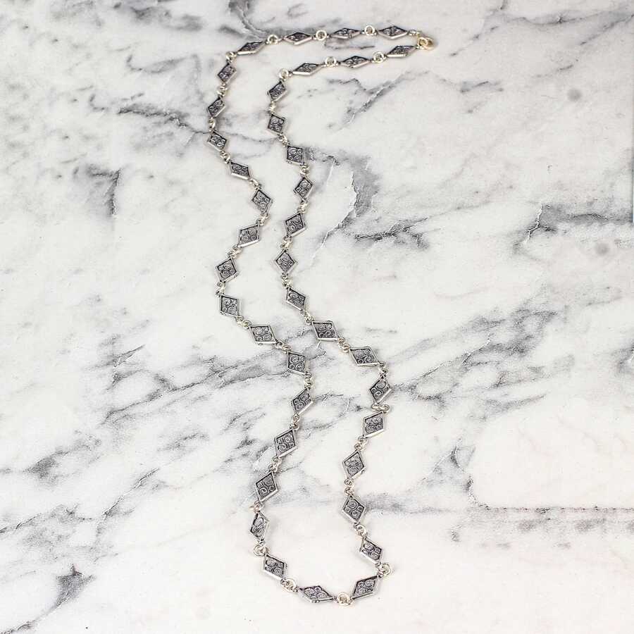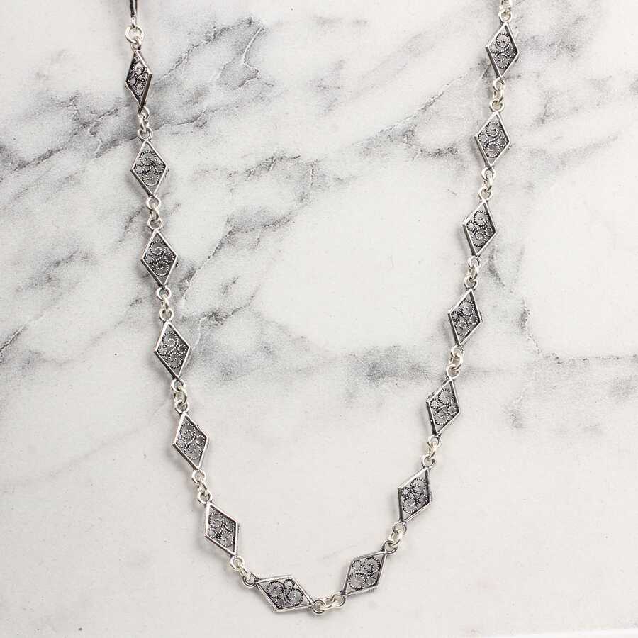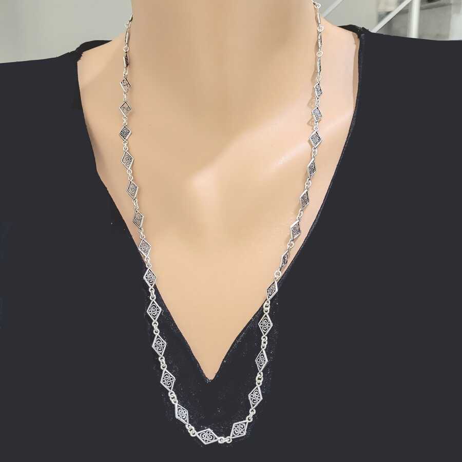 925 Ayar Gümüş 60 cm Baklava Telkâri Zincir Kolye