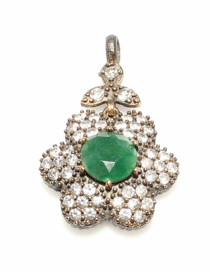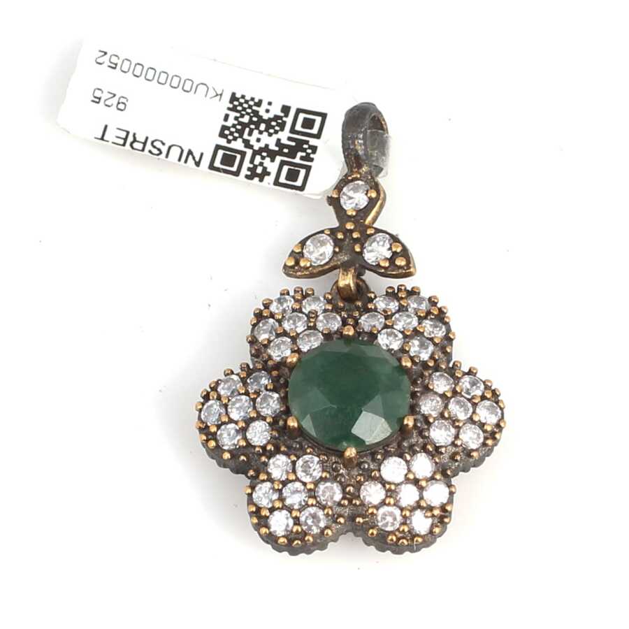 Kolye ucu 925 ayar gümüş ve bronzdan imal edilmiştir. Minik çiçek şeklinde kolye ucu 2,3 cm'ye 3,7 cm boyutlarındadır. Zincir dahil değildir. Kolye ucu sentetik zümrüt ve zirkon taşları vardır. Otantik kolye ucu 7,04 gram ağırlığındadır.