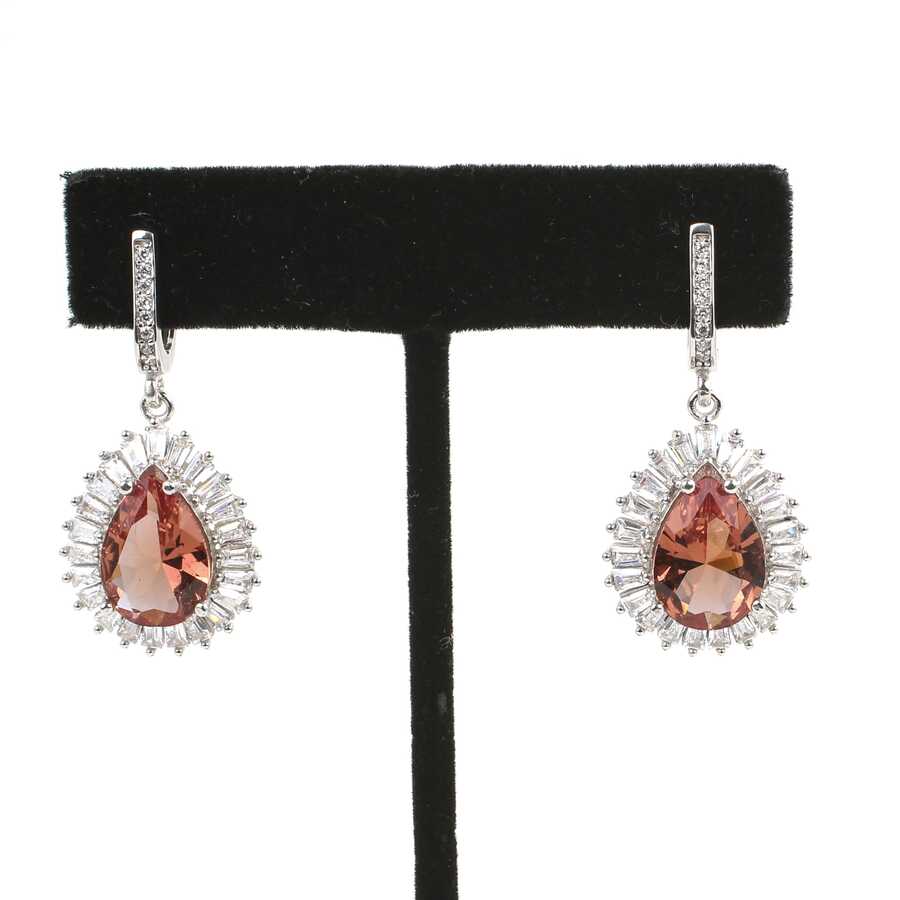 Gümüş küpe 925 ayar gümüşten yapılmıştır. Baget oval anturaj model sallantılı 2,2 cm'ye 1,8 cm boyutlarındadır. Küpe 3,8 cm uzunluğundadır. Küpe beyaz zirkon ve zultanit taşlıdır. Ağırlığı 11,3 gramdır.