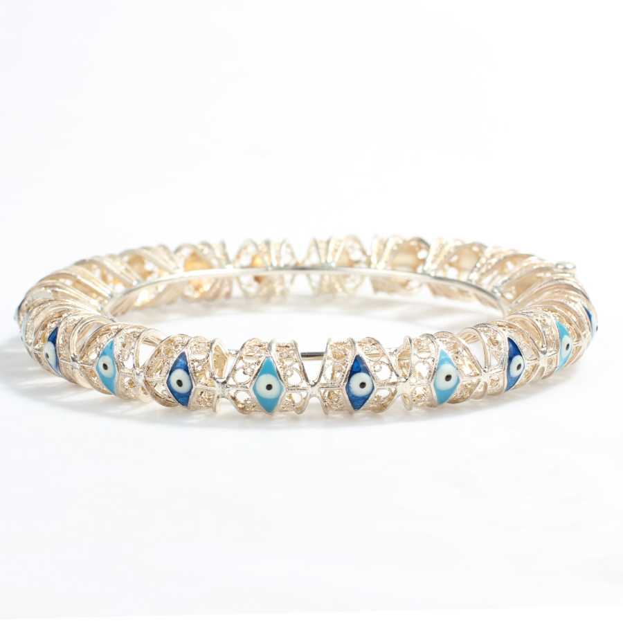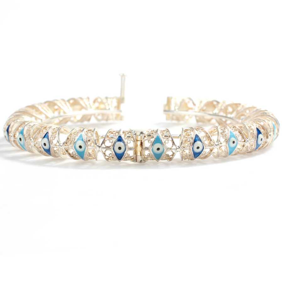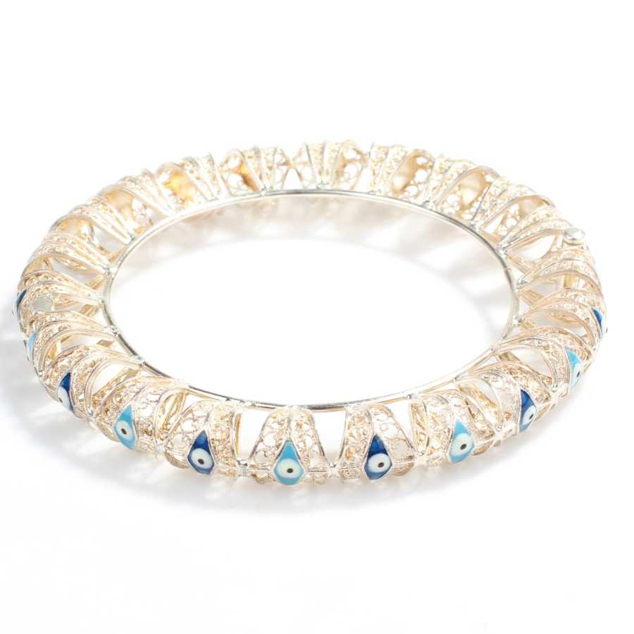 925 Ayar Gümüş Göz Boncuklu Telkari Bilezik