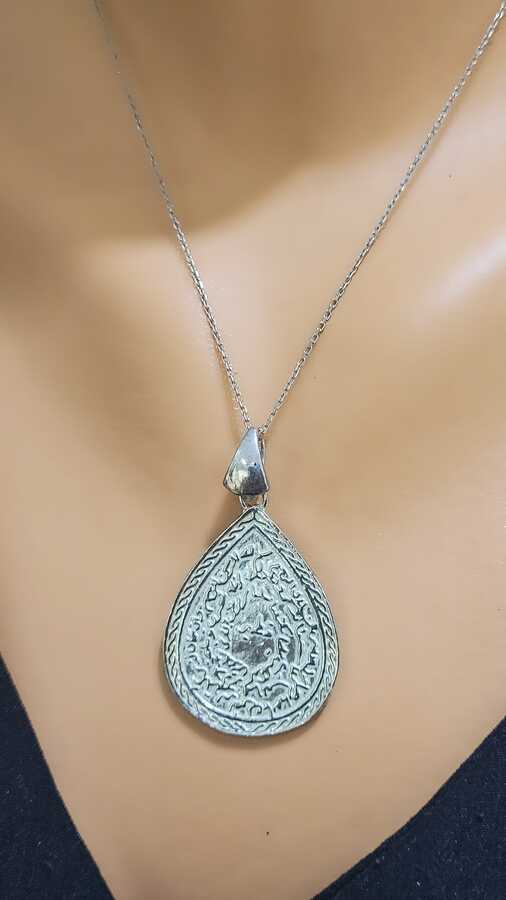 925 Ayar Gümüş Kıtmir Duası Damla Kolye Ucu