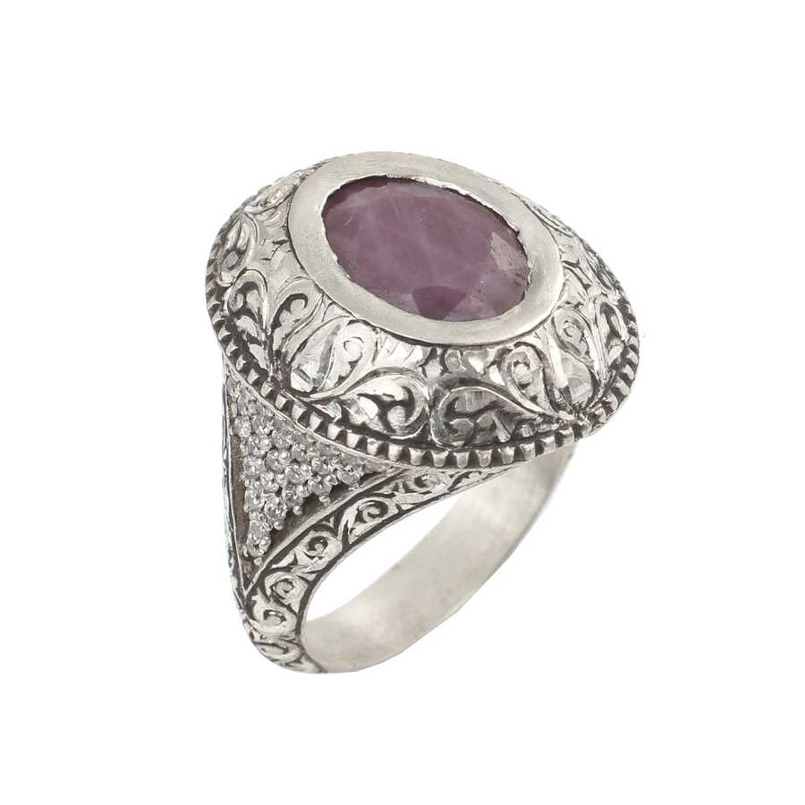 Yüzük 925 ayar gümüşten üretilmiştir. Yüzüğün üzerinde el kalemi atılarak tasarlanmıştır. Taşlı yüzük 2,5 cm'ye 2,1 cm boyutlarındadır. Resimdeki yüzük 26 ölçüdür, ancak tüm ölçüler özel olarak yapılabilmektedir. Yüzük gerçek yakut taşlıdır. Ağırlığı 22 gramdır.