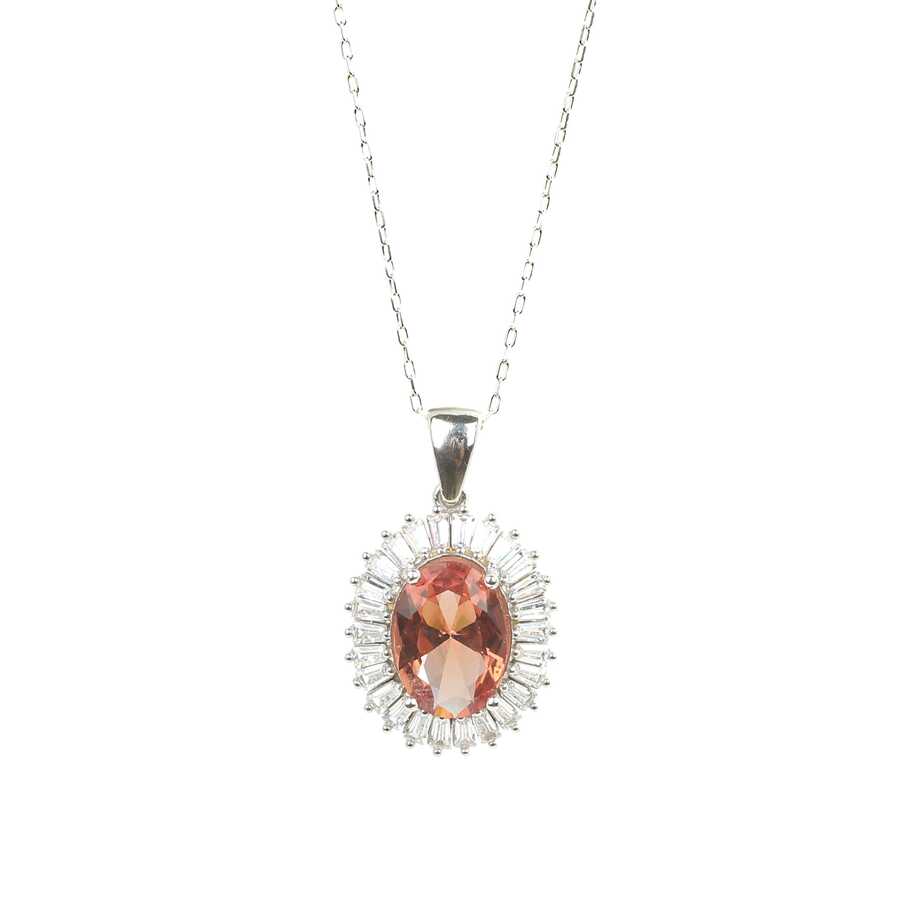 Gümüş kolye 925 ayar gümüşten yapılmıştır. Baget taşlı oval anturaj model kolye 1,9 cm'ye 3,0 cm boyutlarındadır. Gümüş kolye 45 cm uzunluğundadır. Zultanit taşı 1,0 cm'ye 1,4 cm boyutlarındadır. Kolye beyaz zirkon ve zultanit taşlıdır. Ağırlığı 6,69 gramdır.